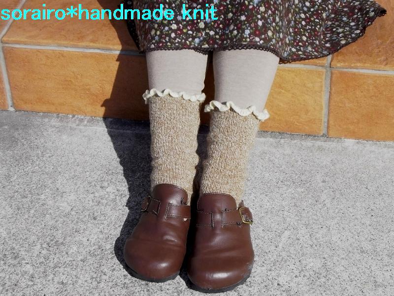 色合いからして、とてもナチュラルな感じで、ナチュラルテイストのお洋服によく合う靴下になりました。