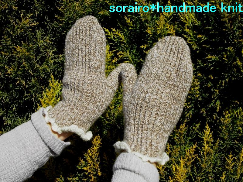 糸がまだだいぶ余ったので、ミトンを編んでみました。