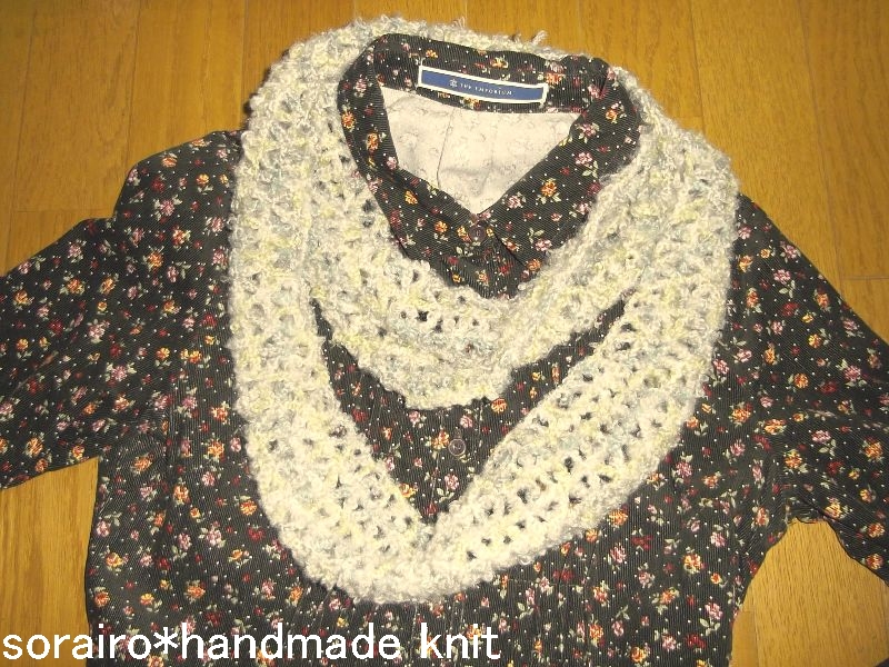 この使用毛糸の色違いが、まだ2種類あるので、やはりスヌードにするか、それとも、ティペットのようなものにするか・・・思案中です。