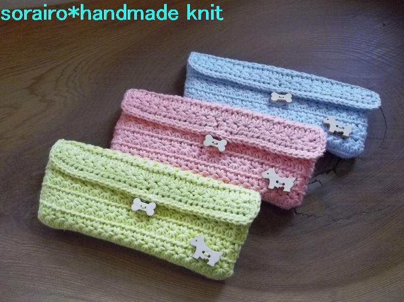 水色、ピンク、黄色(写真は、きみどりっぽく写っちゃってますが)のめがねケースです。