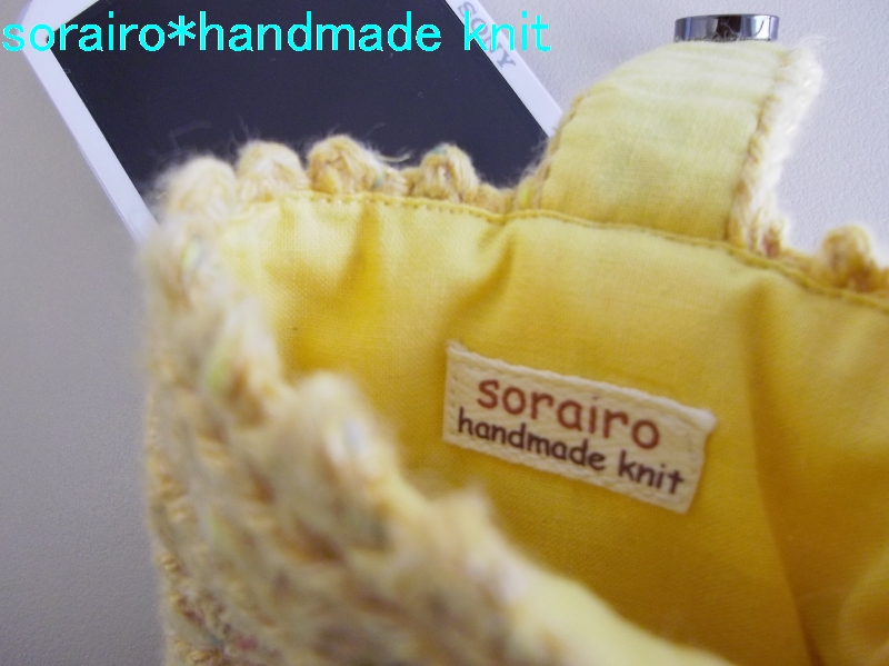 そして、裏は、きれいな黄色の裏布を付けました。自分用だけれど、sorairoのタグも付けましたよ。