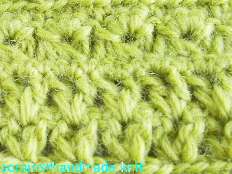 写真の一番上の段が、その編地です。写真をクリックしていただくと、もっと大きい写真が別ウィンドウで開きますので、ご覧ください。